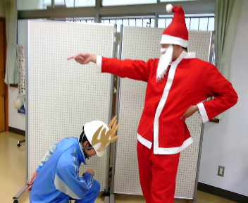練習では福祉の みんなはトナカイになったり、ツリーを組み立てたりサンタさんが登場したり